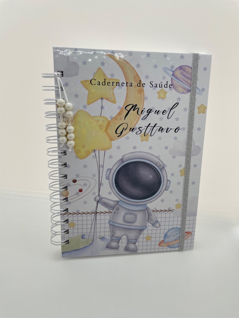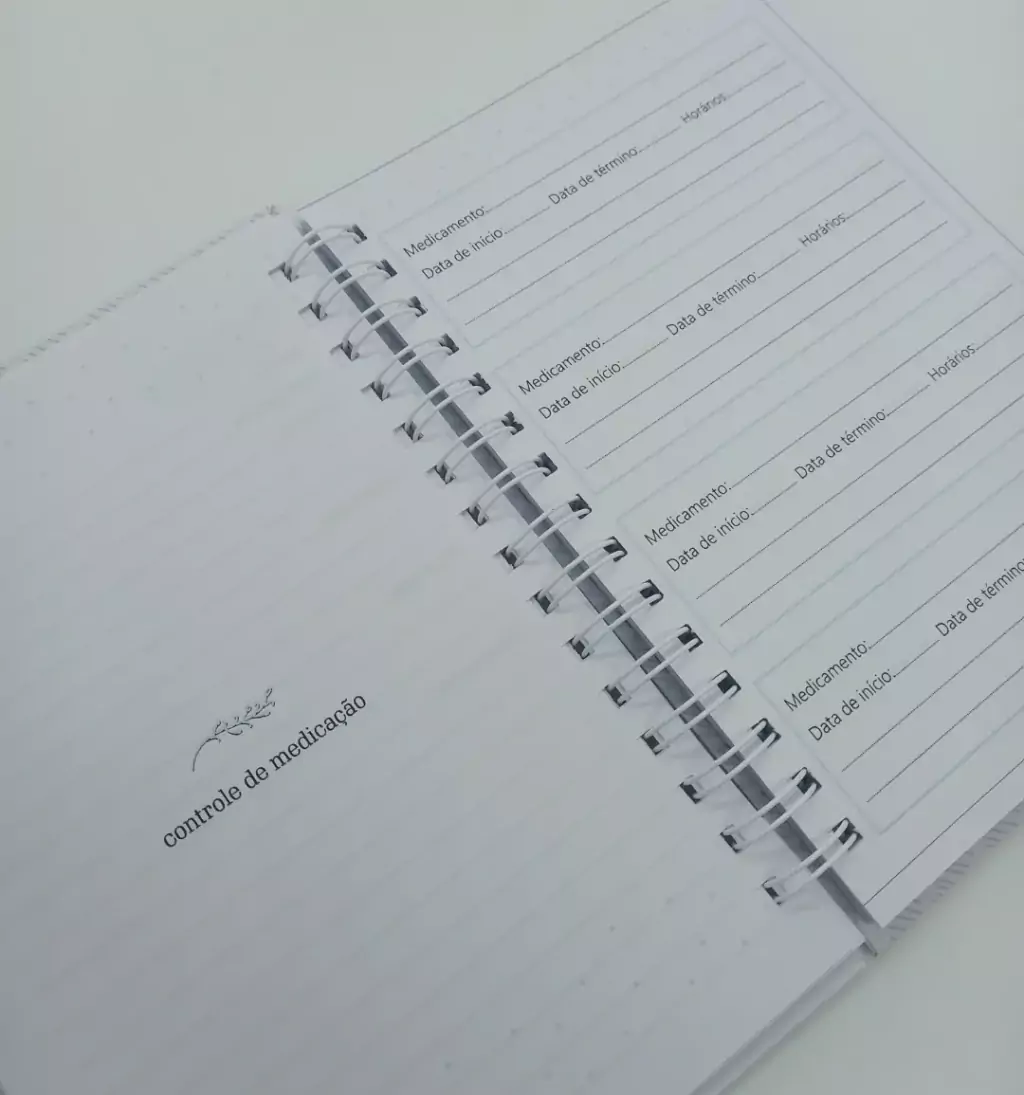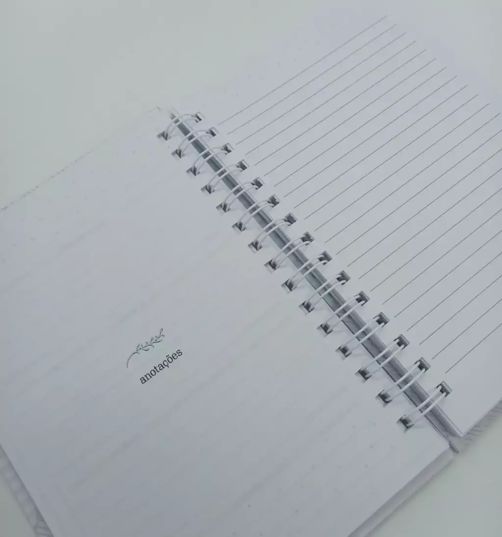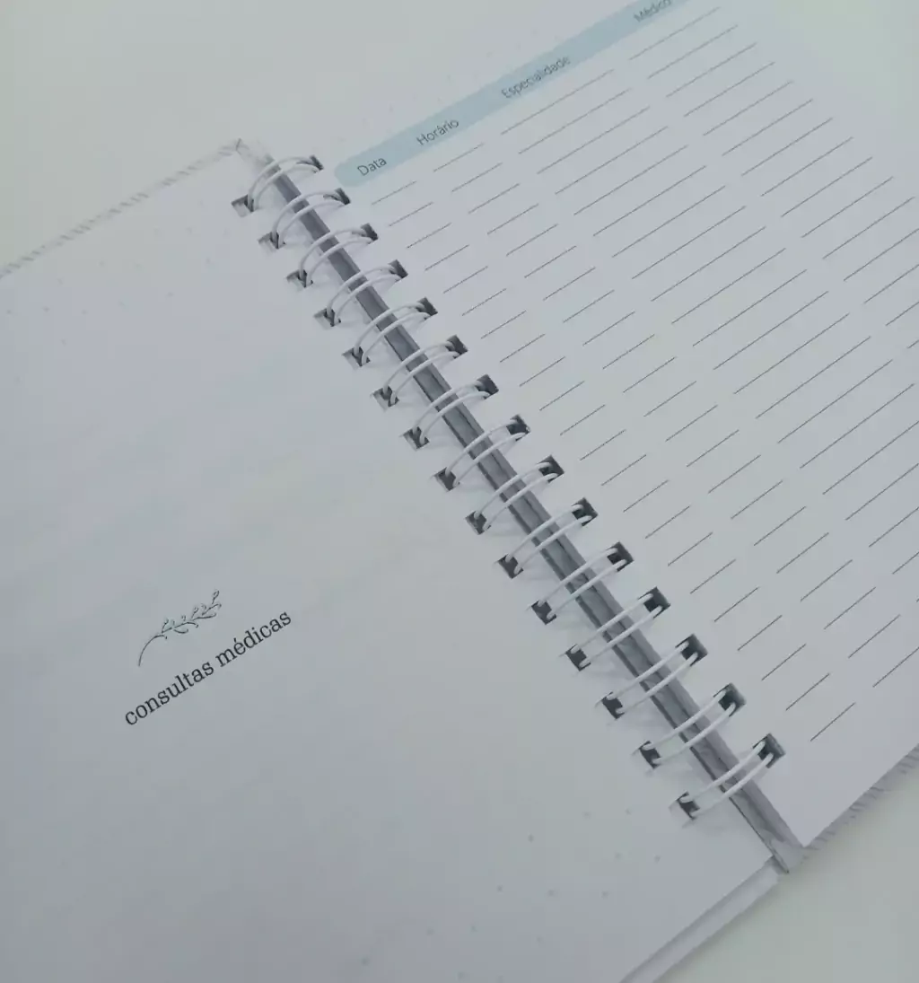 – Capa dura, tamanho 15,5×21,5cm com fechamento em elástico (em cor que combine com o tema)  e encadernação com wire-o branco.